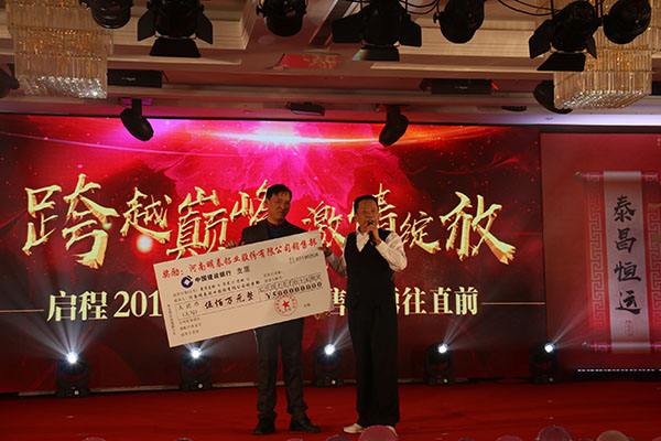 一分耕耘一分收獲,2017年成績的背后,離不開每一位明泰人的辛勤付出和努力拼搏。是他們的奮發(fā)向前、永不言敗,在不斷的摸索和奉獻中收獲了今天的喜人成績。明泰公司為表達對明泰人銳意進取、忠義奉獻的感恩之情,在本次年會上的重要環(huán)節(jié)——頒獎典禮中,特為他們準備了“最佳貢獻團隊獎、“最佳團隊獎”、“優(yōu)秀員工”、“最佳新人獎”,本年度較大的獎項500萬大獎由董事長為賀總頒獎,他們?yōu)楣净锇闃淞⒘税駱樱尨蠹腋袆訚M滿、備受鼓舞!